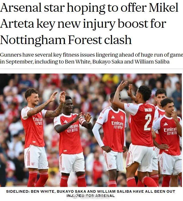 怀特首发出战了新赛季阿森纳对曼联的比赛,但随后因伤缺阵了2场比赛,据悉,枪手将在接下来的几天里评估这名后卫,萨卡和萨利巴的情况也一样。