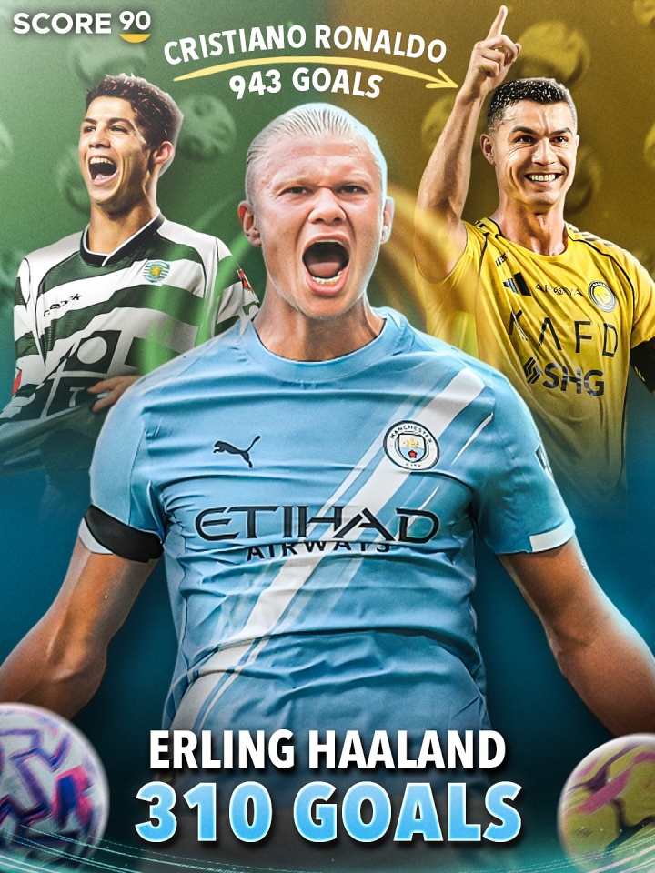 9月11日,外媒Score90数据显示,哈兰德职业生涯总进球数已达310球。若想追平C罗目前追求的千球里程碑,他从2025年至2040年间需保持年均46球的进球效率。
